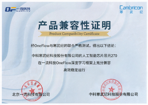 近日,一流科技OneFlow深度学习框架正式和寒武纪思元270智能芯片及加速卡达成适配。这一合作达成,标志着OneFlow新一代深度学习框架的生态进一步得到完善,与新兴AI芯片进一步融合。